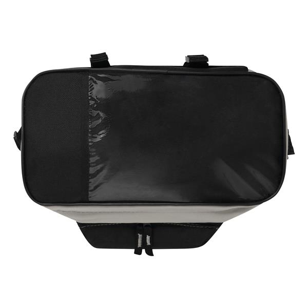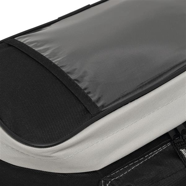 Torba izotermiczna BIKE na kierownicę roweru, z kieszeniami na zamki błyskawiczne, paskami z tyłu, regulowanym paskiem na ramię, zawiera osłonę przeciwdeszczową i przezroczystą kieszeń na mapę. Tagi: Torby termoizolacyjne,akcesoria podróżne,torby outdoorowe,akcesoria rowerowe,torby rowerowe,artykuły rekreacyjne Kolor: czarny, szary Materiał: 600D Poliester