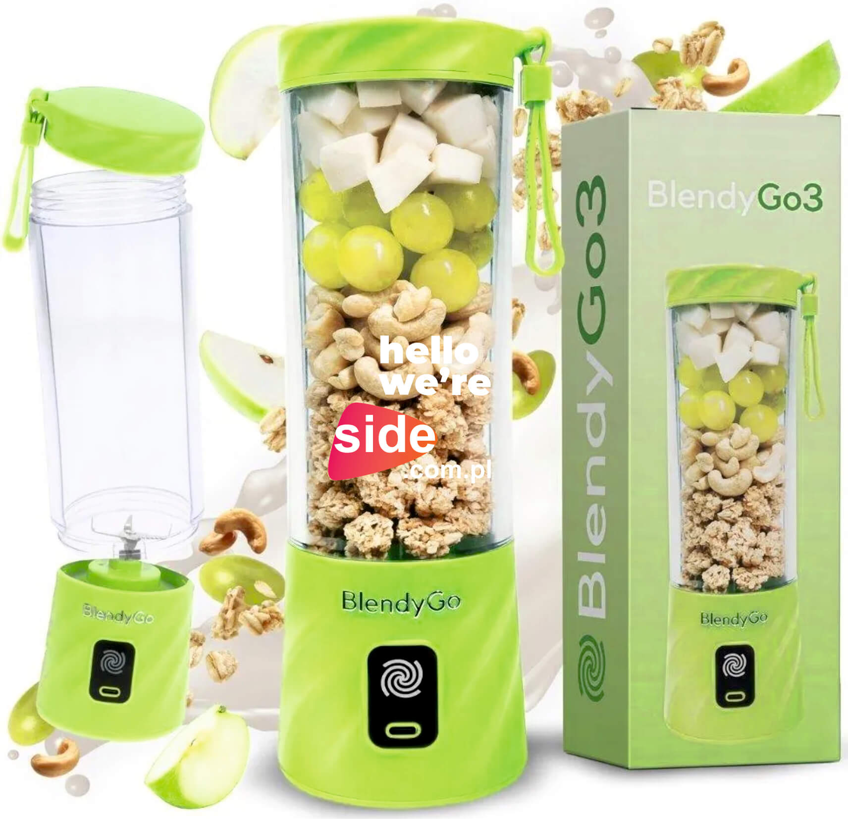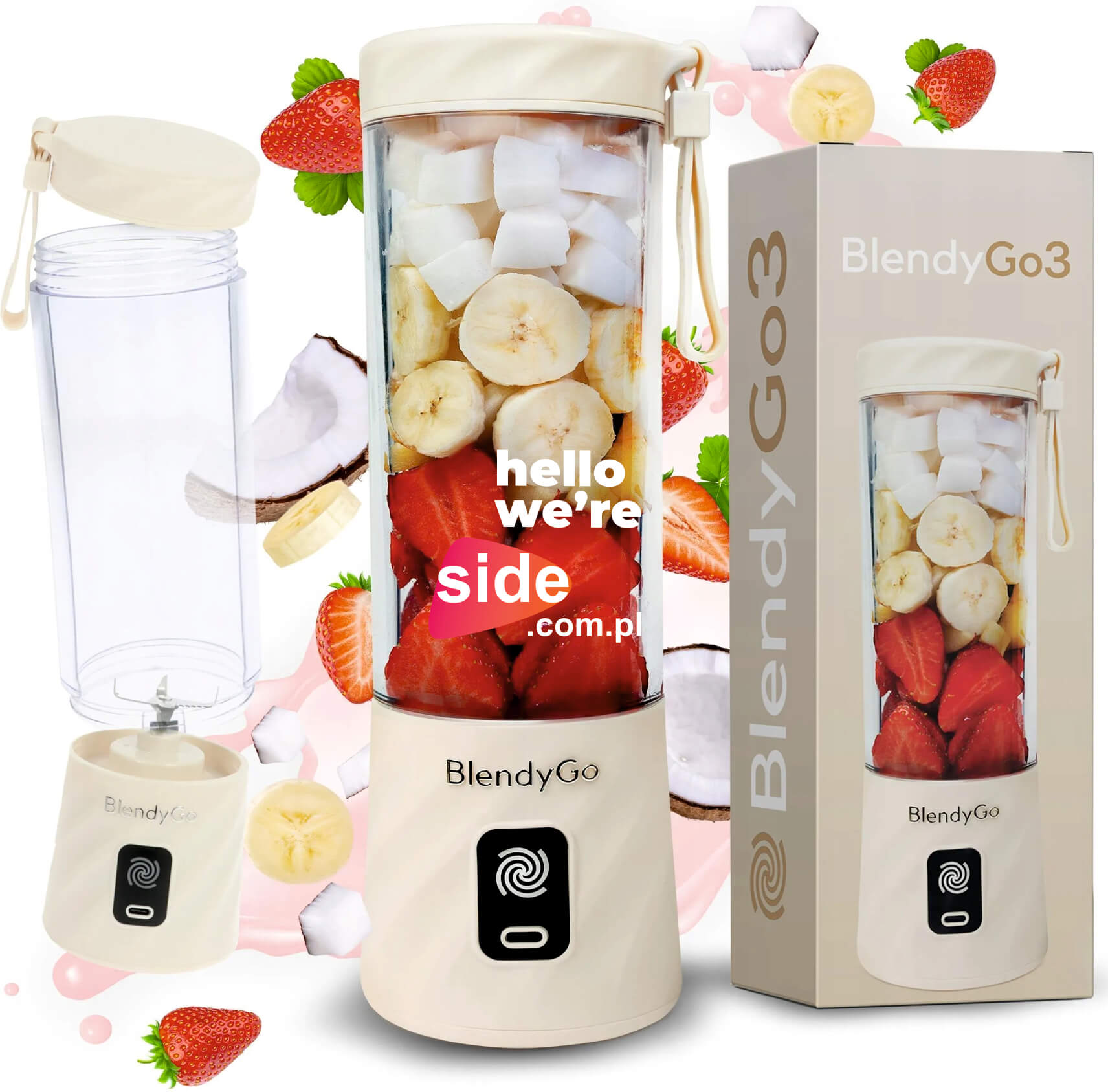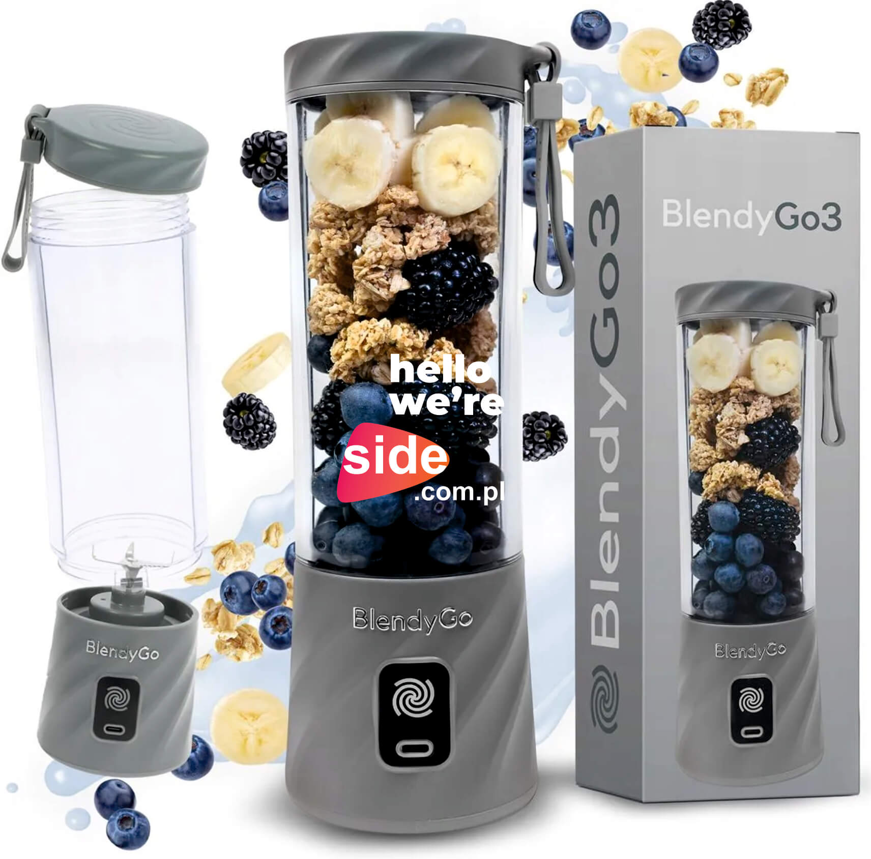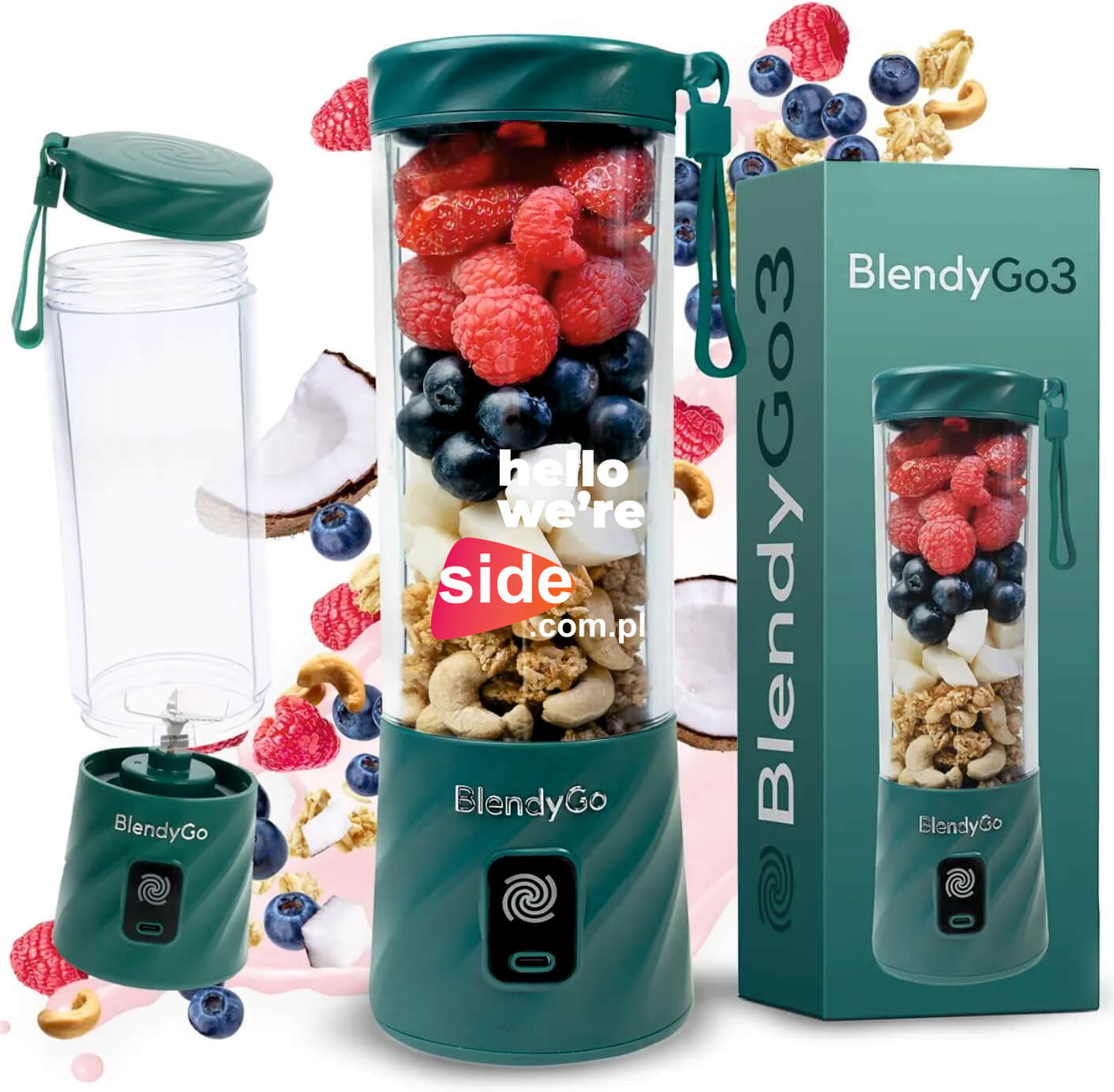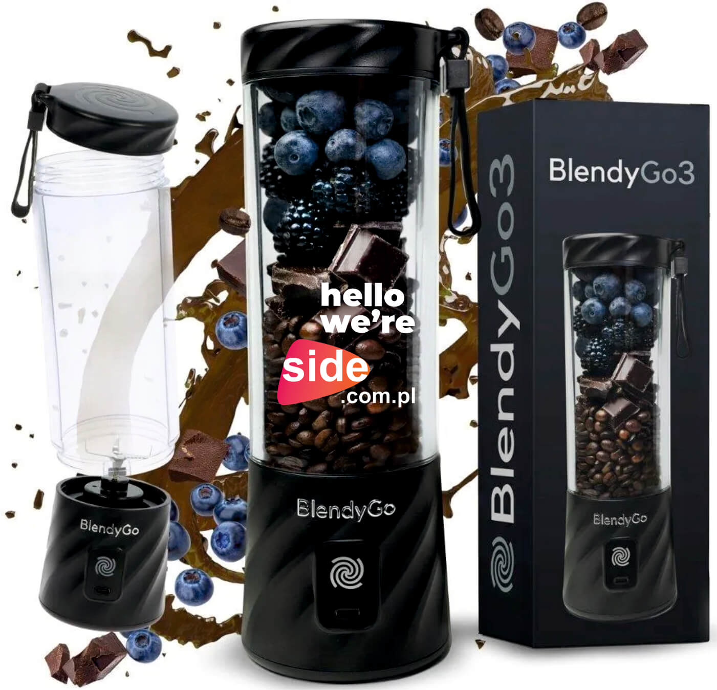 BlendyGo 3 – najmocniejszy blender bezprzewodowy z technologią BlendPro i PulseMotion. Większa pojemność 550 ml, 25 koktajli na jednym ładowaniu, samoczyszczący, wodoodporny, idealny do smoothie, koktajli i twardych składników. Zabierz go wszędzie!