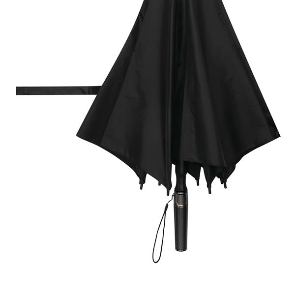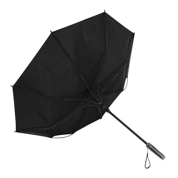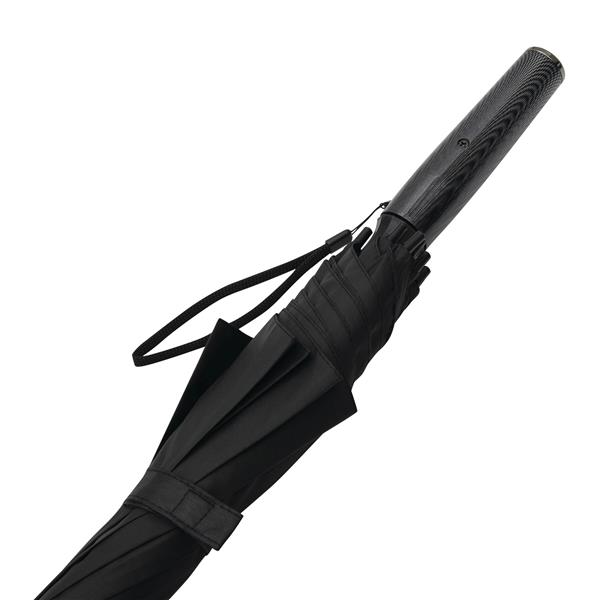 Automatyczny parasol BLIZZARD. Posiada laskę i szyny z włókna szklanego, plastikowe końcówki i plastikową rączkę w kolorze karbonu z wbudowanym przyciskiem i uchwytem do przenoszenia. Ma wysokiej jakości poszycie z poliestru pongee. Zapinany jest na rzep.