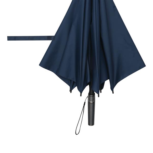 Automatyczny parasol BLIZZARD. Posiada laskę i szyny z włókna szklanego, plastikowe końcówki i plastikową rączkę w kolorze karbonu z wbudowanym przyciskiem i uchwytem do przenoszenia. Ma wysokiej jakości poszycie z poliestru pongee. Zapinany jest na rzep.