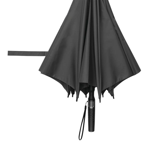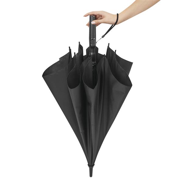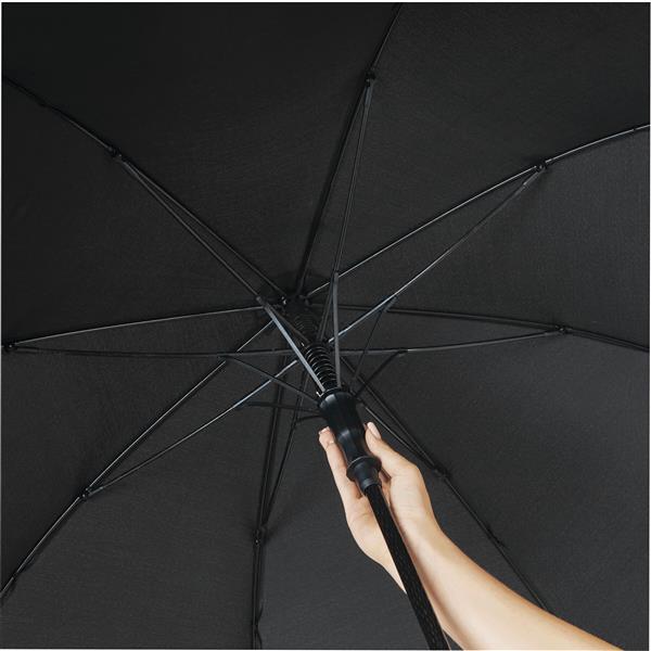 Automatyczny parasol BLIZZARD. Posiada laskę i szyny z włókna szklanego, plastikowe końcówki i plastikową rączkę w kolorze karbonu z wbudowanym przyciskiem i uchwytem do przenoszenia. Ma wysokiej jakości poszycie z poliestru pongee. Zapinany jest na rzep.