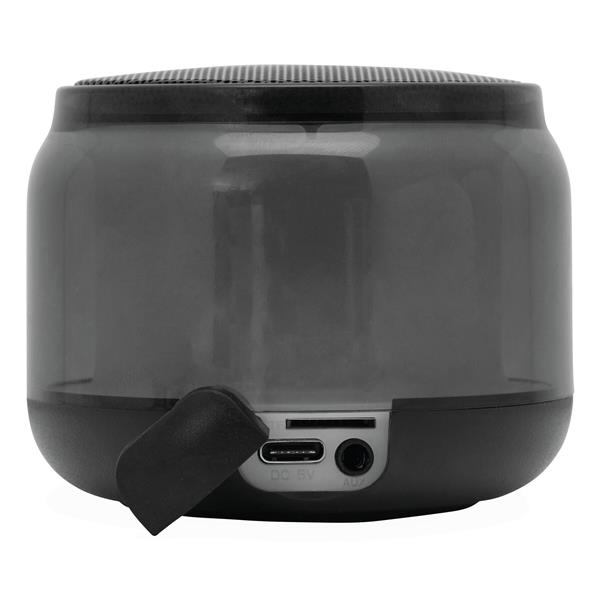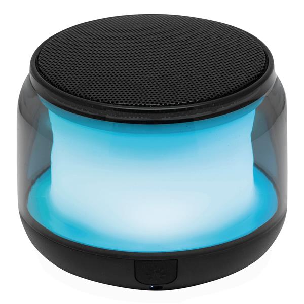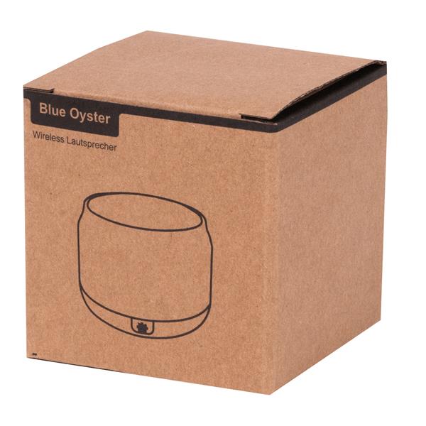 Głośnik bezprzewodowy BLUE OYSTER ze zmiennym lub stałym podświetleniem w 8 kolorach. Podświetlenie można wyłączyć. Moc muzyczna 3 W, zasięg ok. 10 m, do parowania z telefonem komórkowym, odtwarzaczem MP3 lub tabletem. Funkcja głośnomówiąca, moc wejściowa 5V/0,5A , zintegrowany akumulator z 500mAh, antypoślizgowa podstawa. W zestawie kabel ładujący USB typu C o długości ok. 50 cm.