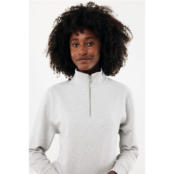 Bluza, unisex, długie rękawy, nowoczesny krój, kołnierz zapinany na zamek błyskawiczy, wykonana w 30% z bawełny z recyklingu i w 70% z bawełny organicznej o gramaturze 300 g/m2, posiada wbudowany znacznik AWARE™, który potwierdza wykorzystanie materiałów z recyklingu, posiada kod QR na metce, który prowadzi do cyfrowego paszportu produktu, 2% wpływów z każdego sprzedanego produktu jest przekazywane na rzecz Water.org
