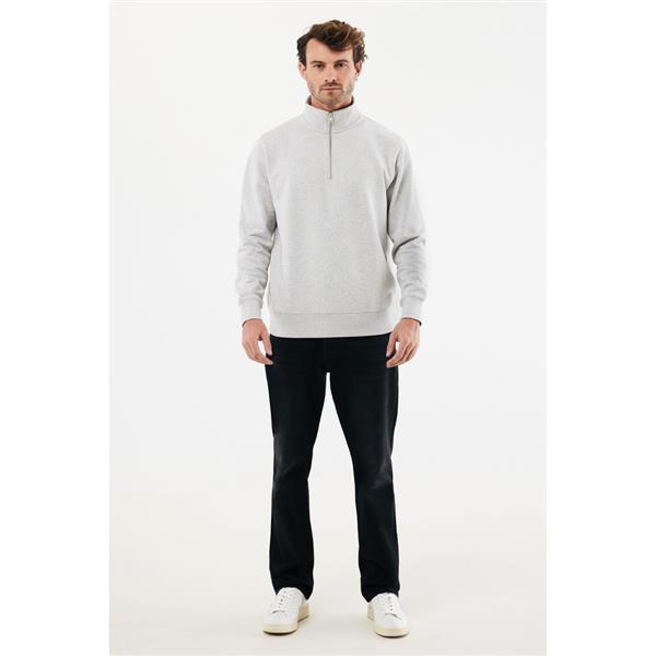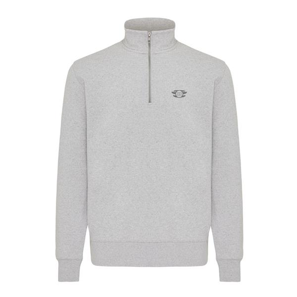 Bluza, unisex, długie rękawy, nowoczesny krój, kołnierz zapinany na zamek błyskawiczy, wykonana w 30% z bawełny z recyklingu i w 70% z bawełny organicznej o gramaturze 300 g/m2, posiada wbudowany znacznik AWARE™, który potwierdza wykorzystanie materiałów z recyklingu, posiada kod QR na metce, który prowadzi do cyfrowego paszportu produktu, 2% wpływów z każdego sprzedanego produktu jest przekazywane na rzecz Water.org