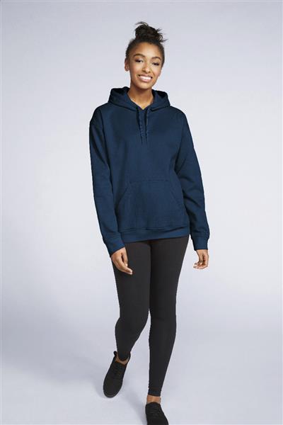 Bluza z kapturem i kieszenią z przodu, wykonana w 80% z bawełny i w 20% z poliestru. Gramatura 285 g/m2 (biała 278 g/m2). Produkt marki Gildan.