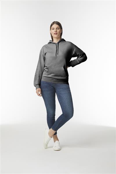 Bluza z kapturem i kieszenią z przodu, wykonana w 80% z bawełny i w 20% z poliestru. Gramatura 285 g/m2 (biała 278 g/m2). Produkt marki Gildan.