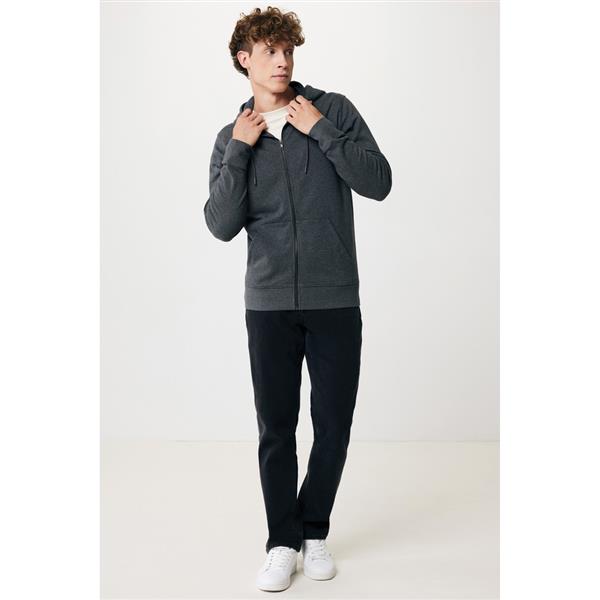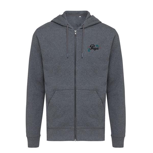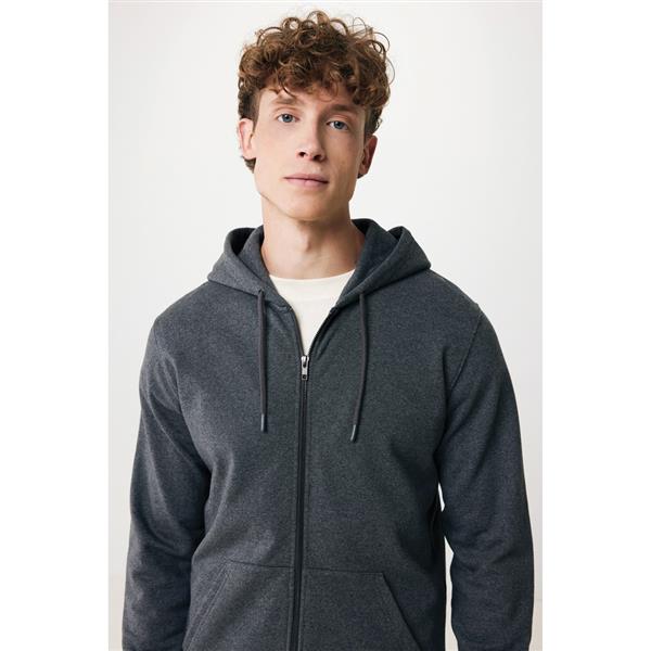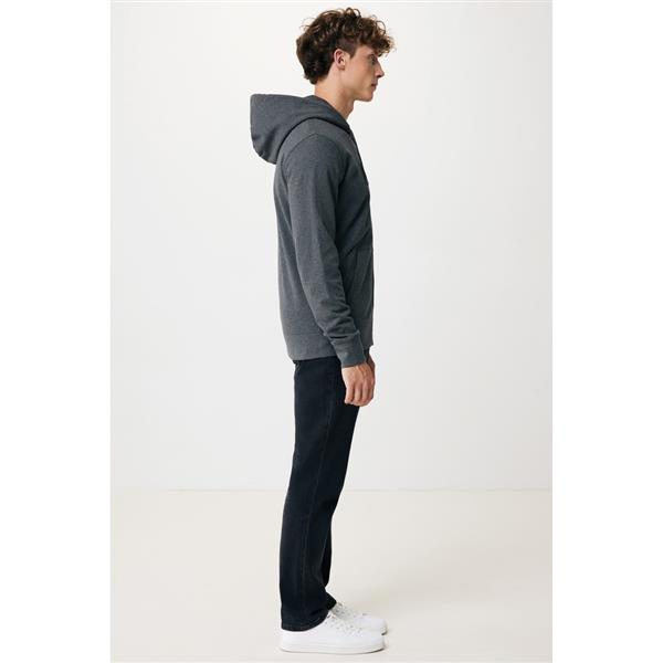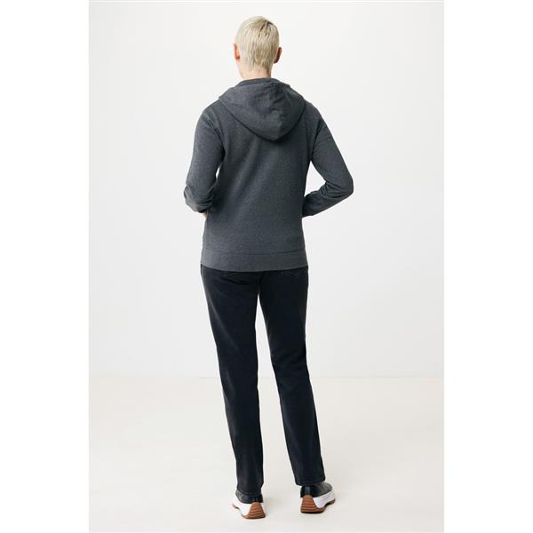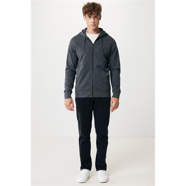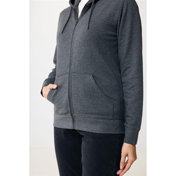 Bluza z kapturem, zapinana na zamek, unisex, regularny krój, splot Brushed Sweat, długie rękawy, dwuwarstwowy kaptur, wykonana w 50% z bawełny z recyklingu i w 50% z bawełny organicznej o gramaturze 340 g/m2, bez dodatku poliestru, posiada wbudowany znacznik AWARE™, który potwierdza wykorzystanie materiałów z recyklingu, posiada kod QR na metce, który prowadzi do cyfrowego paszportu produktu, 2% wpływów z każdego sprzedanego produktu z kolekcji Impact jest przekazywane na rzecz Water.org