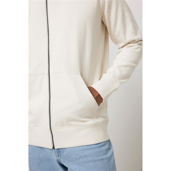 Bluza z kapturem, zapinana na zamek, unisex, regularny krój, splot Brushed Sweat, długie rękawy, dwuwarstwowy kaptur, wykonana w 50% z bawełny z recyklingu i w 50% z bawełny organicznej o gramaturze 340 g/m2, bez dodatku poliestru, posiada wbudowany znacznik AWARE™, który potwierdza wykorzystanie materiałów z recyklingu, posiada kod QR na metce, który prowadzi do cyfrowego paszportu produktu, 2% wpływów z każdego sprzedanego produktu z kolekcji Impact jest przekazywane na rzecz Water.org