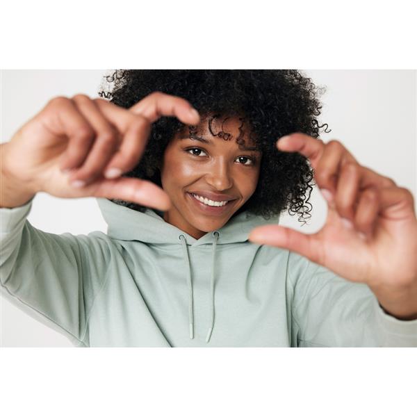 Bluza z kapturem, unisex, regularny krój, splot Brushed Sweat, długie rękawy, dwuwarstwowy kaptur, wykonana w 50% z bawełny z recyklingu i w 50% z bawełny organicznej o gramaturze 340 g/m2, bez dodatku poliestru, posiada wbudowany znacznik AWARE™, który potwierdza wykorzystanie materiałów z recyklingu, posiada kod QR na metce, który prowadzi do cyfrowego paszportu produktu, 2% wpływów z każdego sprzedanego produktu z kolekcji Impact jest przekazywane na rzecz Water.org, ślad węglowy produktu: 11,77 kg CO2