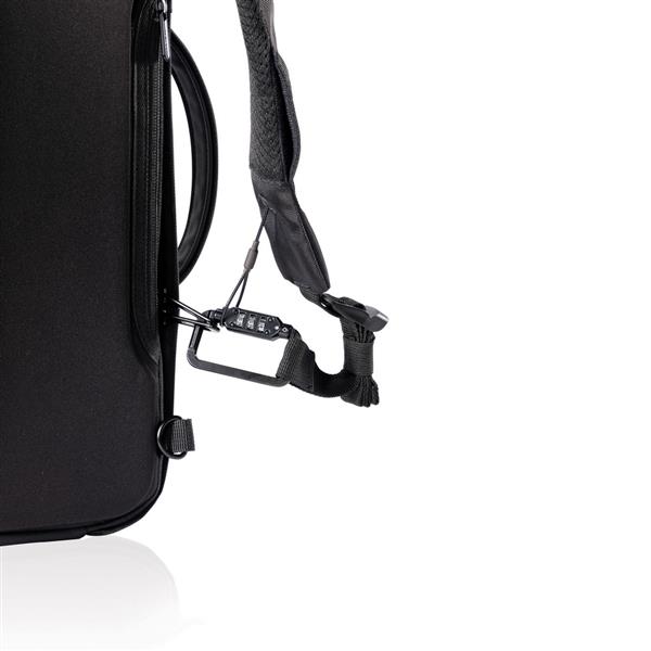 Plecak na laptopa 16”, torba, ukryte kieszenie wewnątrz, przegroda na tablet do 12,9”, wykonany z materiału odpornego na przecięcie, metalowa rama wewnątrz, kieszeń z ochroną RFID, przestronna przegroda główna, zintegrowana kłódka, posiada znacznik AWARE™, który gwarantuje, że wykorzystane materiały pochodzą z recyklingu