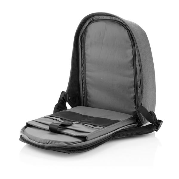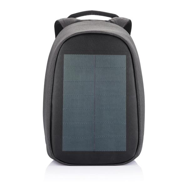 Plecak chroniący przed kieszonkowcami Bobby Tech z panelem słonecznym, odporny na przecięcia materiał PP, zintegrowany moduł ładowania bezprzewodowego, specjalna konstrukcja umożliwia łatwą reorganizację przegródek wewnątrz w zależności od potrzeby, pasek na ramię z opatentowanym systemem blokady fid ułatwiającym dostęp do kubka lub telefonu, ukryte kieszenie, kieszenie z ochroną RFID, bezprzewodowe ładowanie jest kompatybilne ze wszystkimi urządzeniami posiadającymi możliwość ładowania indukcyjnego, wzór zastrzeżony®