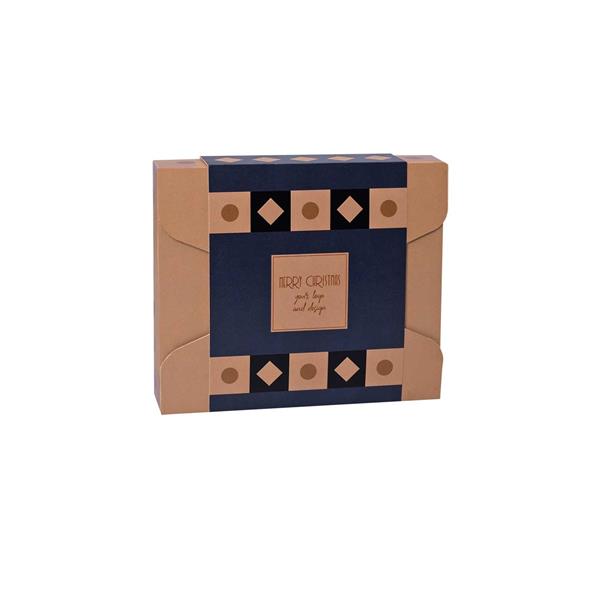 Opakowanie zestawu jest przyjazne dla środowiska, wykonane z materiałów biodegradowalnych. Nie zawiera plastiku. Możliwość umieszczenia logo firmy, dowolnej grafiki i treści na bombonierce dodaje jej walorów promocyjnych, co sprawia, że jest doskonałym wyborem jako elegancki i smakowity sposób na budowanie relacji z klientami i partnerami biznesowymi.