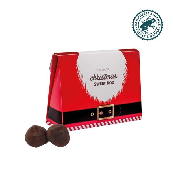 Bombonierka Lyon Box to zestaw trzech francuskich trufli czekoladowych, które zachwycą każdego miłośnika słodkości. Efektowne choć, małe opakowanie sprawia, że to idealny wybór zarówno na niewielki upominek, jak i element większego zestawu prezentowego. Elegancka bombonierka z logo doskonale podkreśli prestiż Twojej marki i pozwoli wyróżnić się na tle konkurencji.