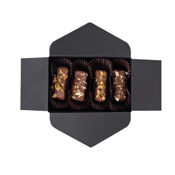 Elevate your holiday gifts to the next level with our PREMIUM POCKET MINI Marzipan Box. This exclusive product, designed with business clients in mind, contains four exceptional pieces of marzipan that will add a perfect touch to any corporate occasion. The box includes: