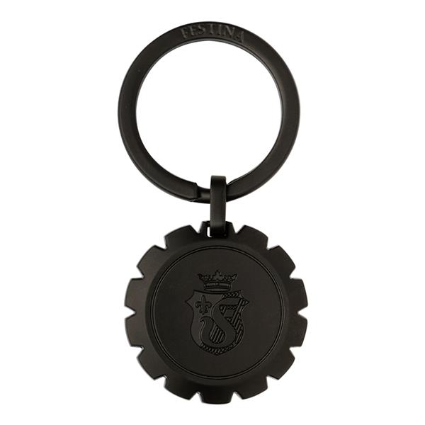 Czarny, matowy brelok do kluczy `Chronobike` jest inspirowany przyciskiem stopu ikonicznego zegarka Chrono Bike. Produkt sygnowany jest markowym logo, precyzyjnie wygrawerowanym na powierzchni, co sprawia, że staje się modnym dodatkiem.