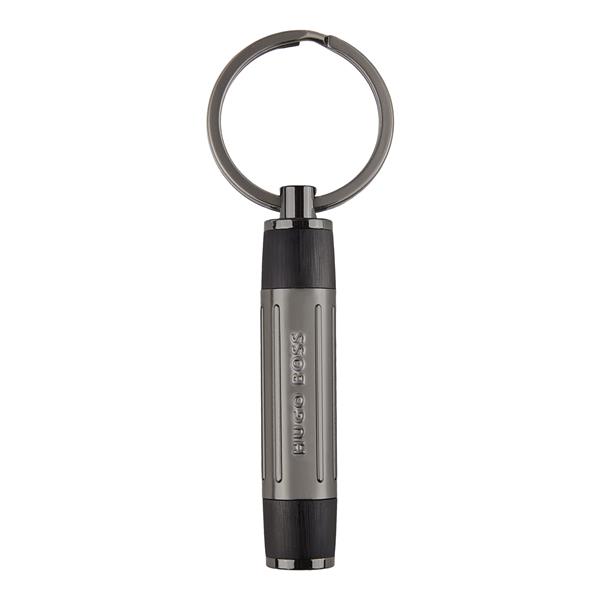 Nasz nowy brelok Gear ribs prezentuje mieszankę wyrazistego szczotkowanego aluminium i matowych metalowych platerów, co nadaje produktom futurystyczny i elegancki wygląd. Najnowocześniejsze maszyny sprawiają, że trójwymiarowa klatka piersiowa zdobiąca brelok jest możliwa i pozwala na podpisanie logo 3D, które jest subtelne i zdecydowanie nowoczesne. Ta wersja to mieszanka czarnego, szczotkowanego aluminium z subtelnymi akcentami pistoletowymi.