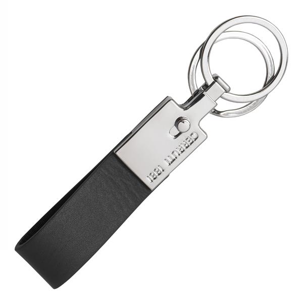 Wykonany ze starannie wyselekcjonowanej czarnej, wegańskiej skóry i przymocowany do błyszczącej chromowanej konstrukcji z dwoma metalowymi pierścieniami. Brelok do kluczy Zoom z Cerruti 1881 jest klasyczny i elegancki.