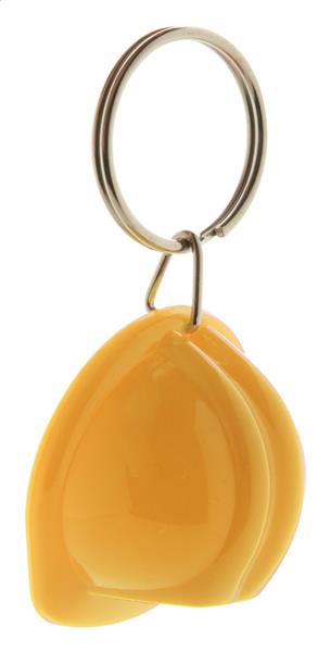 Brelok do kluczy w kształcie kasku. Description: Brelok do kluczy w kształcie kasku. Primary Color: żółty Material 1: Plastik Rozmiar: 37×38×22 mm