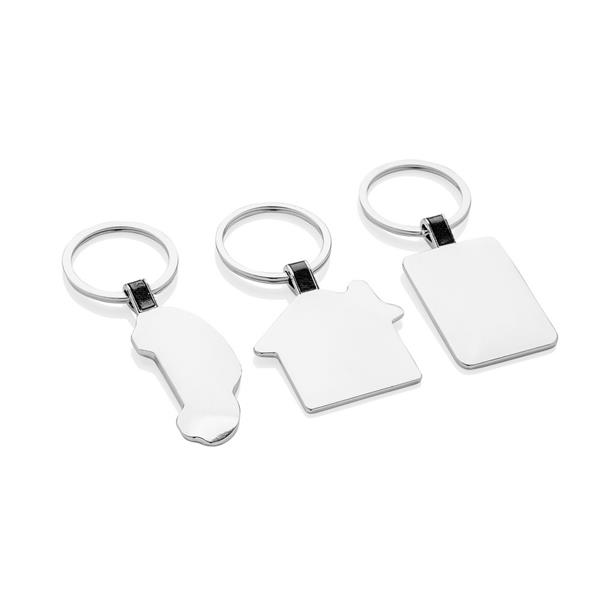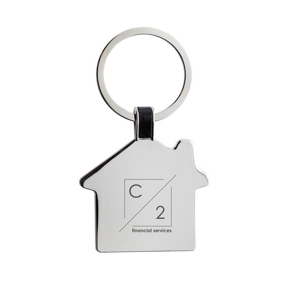 Brelok do kluczy „domek”, wykonany z metalu pochodzącego z recyklingu, całkowita zawartość materiałów z recyklingu obliczona w oparciu o wagę całkowitą przedmiotu: 84%