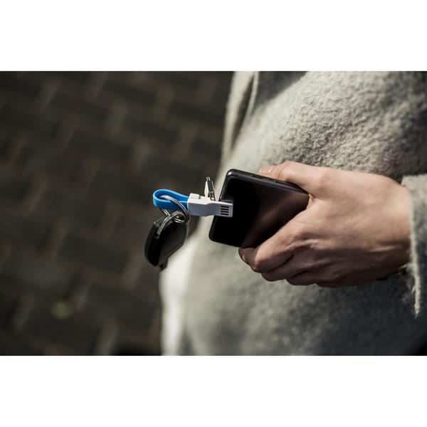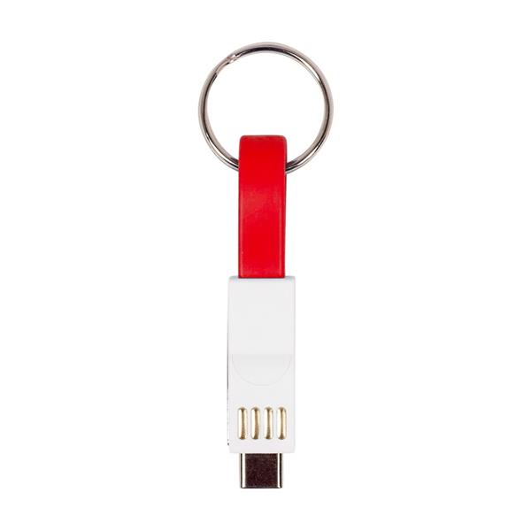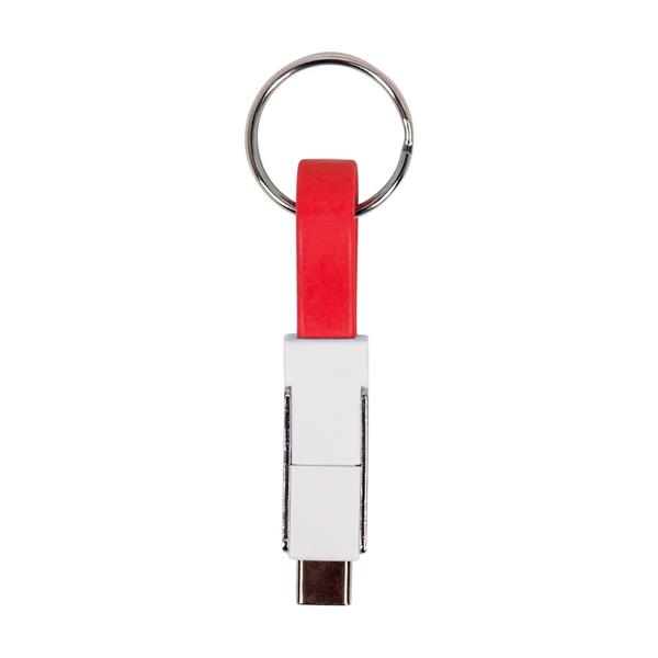 Brelok do kluczy, kabel do ładowania i synchronizacji z 3 końcówkami: USB, USB typu C oraz końcówką 2 w 1 (micro USB oraz kompatybilną z urządzeniami iOS)