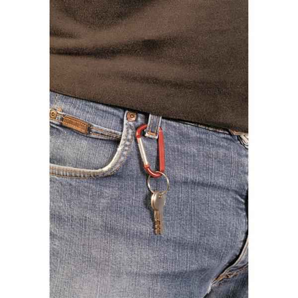 Brelok do kluczy w kształcie karabińczyka umożliwiającego przypinanie, produkt wykonany z aluminium