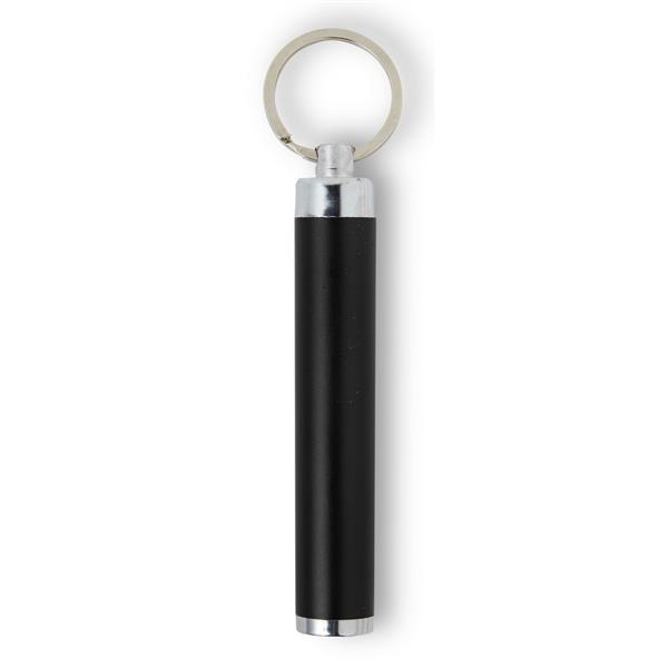 Kieszonkowa latarka LED z brelokiem umożliwiającym przyczepienie do kluczy, grawer ukazuje podświetlaną powierzchnię, niewielki rozmiar