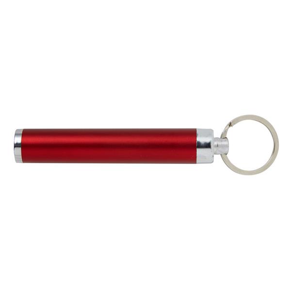 Kieszonkowa latarka LED z brelokiem umożliwiającym przyczepienie do kluczy, grawer ukazuje podświetlaną powierzchnię, niewielki rozmiar