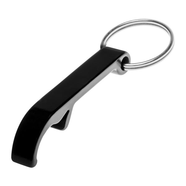 Otwieracz do butelek z brelokiem umożliwiającym przyczepienie do kluczy, otwieracz posiada matowe wykończenie, produkt wykonany z aluminium