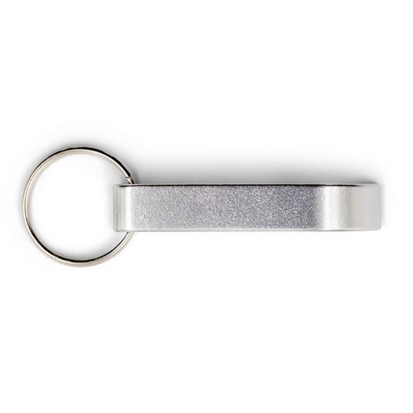 Otwieracz do butelek z brelokiem umożliwiającym przyczepienie do kluczy, otwieracz posiada matowe wykończenie, produkt wykonany z aluminium