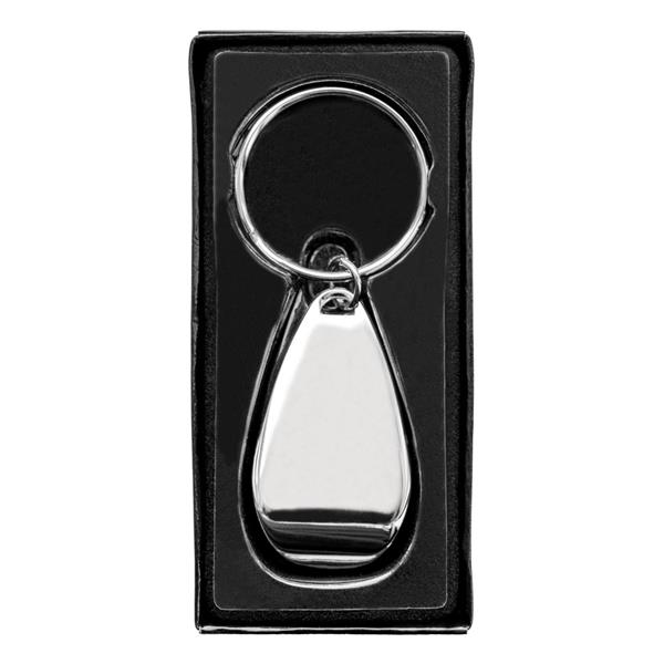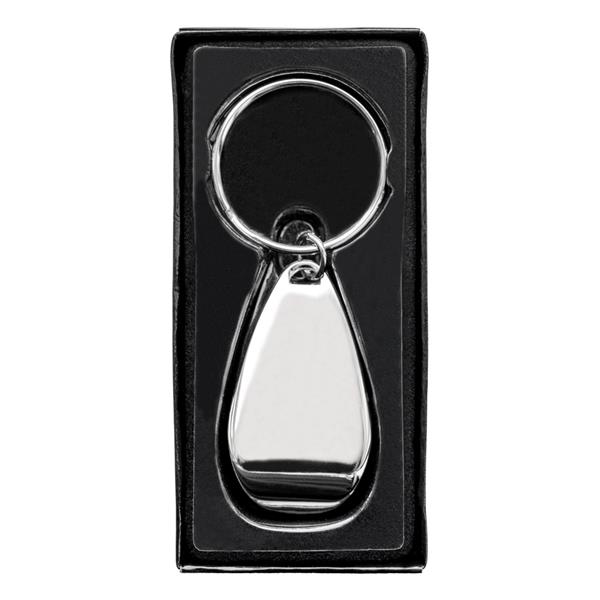 Otwieracz do butelek z brelokiem umożliwiającym przyczepienie do kluczy, czarne pudełko podarunkowe w komplecie, produkt wykonany z metalu