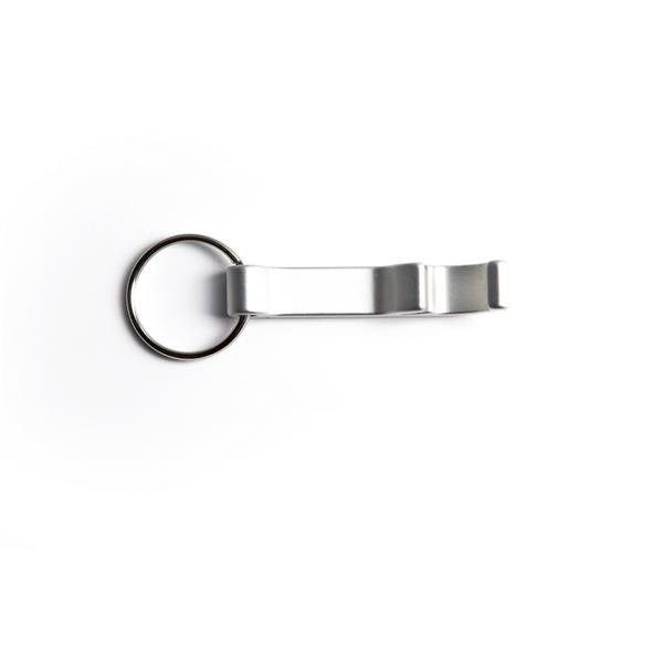 Otwieracz do butelek z brelokiem umożliwiającym przyczepienie do kluczy, otwieracz posiada matowe wykończenie, produkt wykonany z aluminium