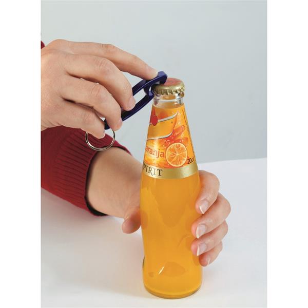 Otwieracz do butelek z brelokiem umożliwiającym przyczepienie do kluczy, produkt wykonany z aluminium