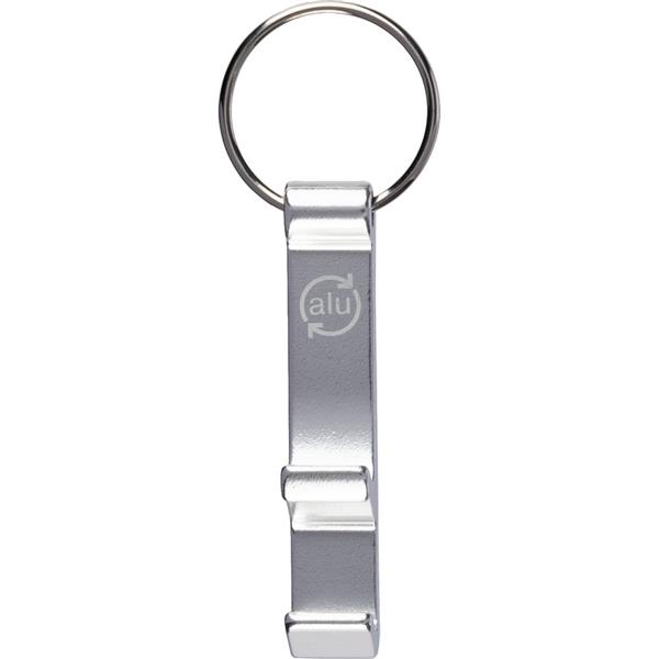 Brelok do kluczy z funkcją otwierania butelek, ikona aluminium z recyklingu na produkcie, może zostać użyty jako stojak do telefonu, produkt wykonany z aluminium z recyklingu