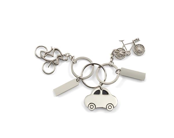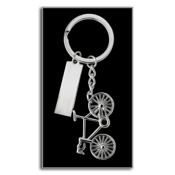 Brelok do kluczy „rower” z prostokątną plakietką na personalizację, w pudełku