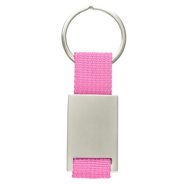 Brelok do kluczy z metalową plakietką przeznaczoną pod znakowanie, produkt wykonany z metalu i poliestru