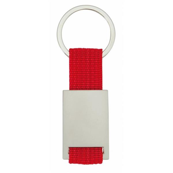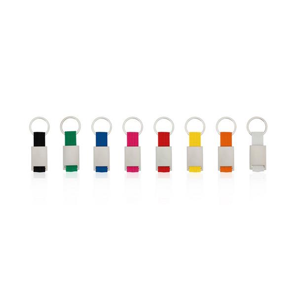 Brelok do kluczy z metalową plakietką przeznaczoną pod znakowanie, produkt wykonany z metalu i poliestru
