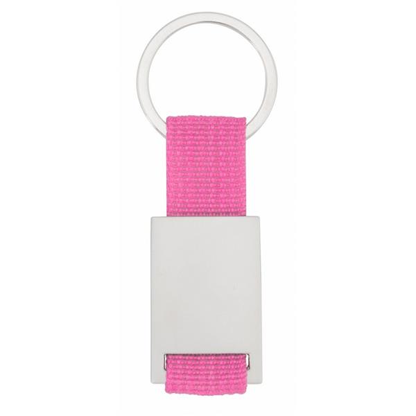 Brelok do kluczy z metalową plakietką przeznaczoną pod znakowanie, produkt wykonany z metalu i poliestru