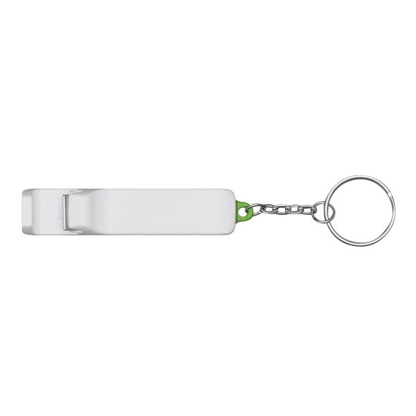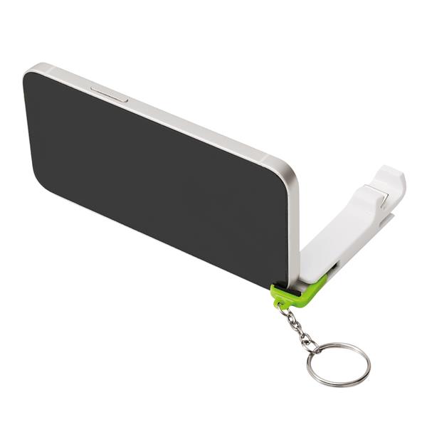 Brelok DOUBLE OPEN z wysuwaną podstawką na smartfon i zintegrowanym otwieraczem do butelek. Materiał: Plastik/Stal Kolor: biały, zielony Tagi: Breloki/smycze,akcesoria do smartfonów,akcesoria do telefonów komórkowych/smartfonów,otwieracze/zakrętki do butelek