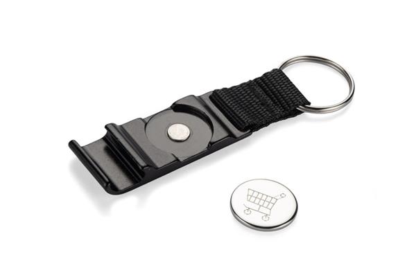 Brelok JOGO to praktyczny gadżet reklamowy, który łączy w sobie trzy funkcje: żeton do wózka sklepowego, otwieracz do butelek oraz stylowy brelok. Wykonany z trwałych materiałów, idealny do codziennego użytku. Dzięki kompaktowym rozmiarom i możliwości personalizacji, stanowi doskonały nośnik logo Twojej firmy.