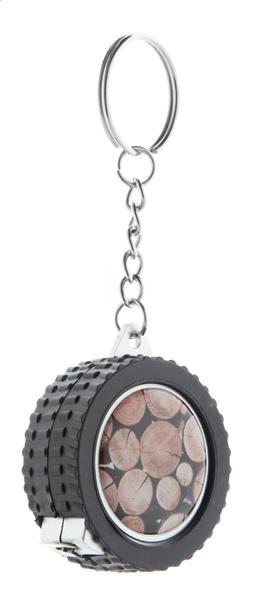 Metalowy brelok na klucze z 1m. taśmą mierniczą. Description: Metalowy brelok na klucze z 1m. taśmą mierniczą. Primary Color: czarny Material 1: Plastik Material 2: Metal Rozmiar: o40 mm
