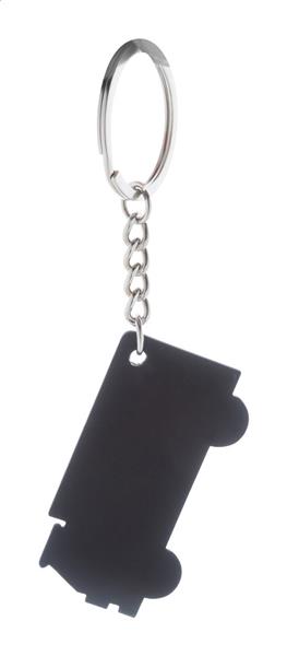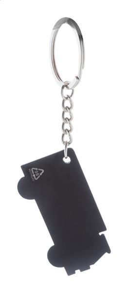 Brelok w kształcie ciężarówki, ze stali nierdzewnej z recyklingu z gumowanym wykończeniem. Ze specjalną powłoką do grawera lustrzanego.