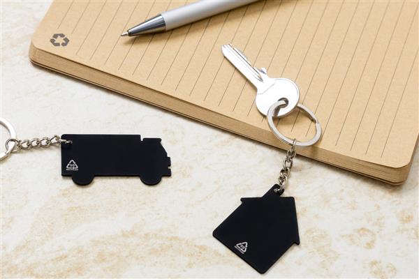 Brelok w kształcie ciężarówki, ze stali nierdzewnej z recyklingu z gumowanym wykończeniem. Ze specjalną powłoką do grawera lustrzanego. Rozmiar: 55×30×2 mm Material 2: Guma Primary Color: czarny Material 1: Stal nierdzewna z recyklingu Description: Brelok w kształcie ciężarówki, ze stali nierdzewnej z recyklingu z gumowanym wykończeniem. Ze specjalną powłoką do grawera lustrzanego.