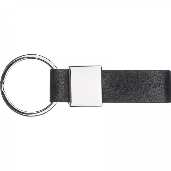 Brelok z metalu i skóry syntetycznej.
