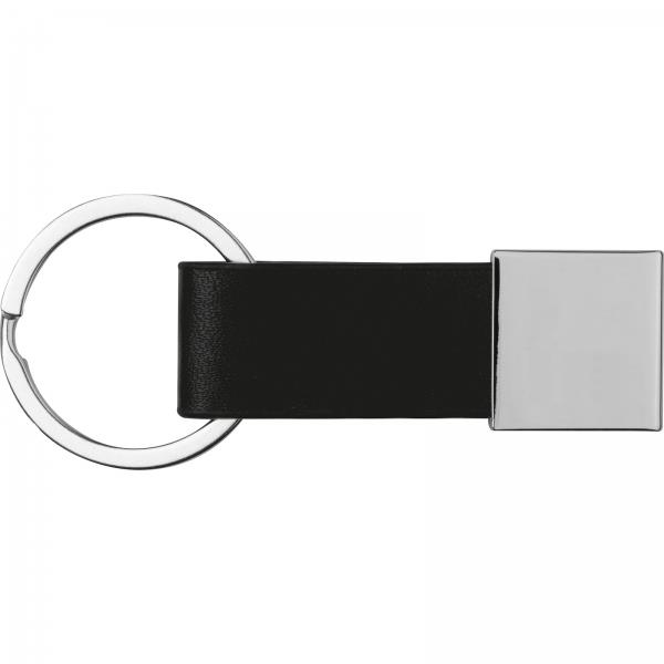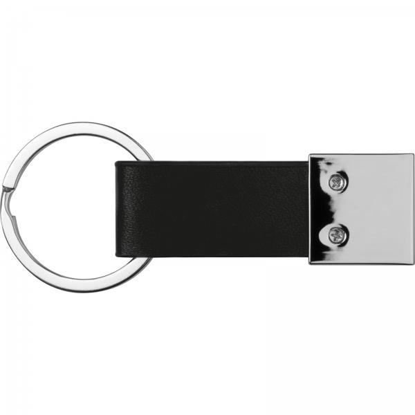 Brelok składający się ze skóropodobnego paska (PU) i metalowej blaszki.