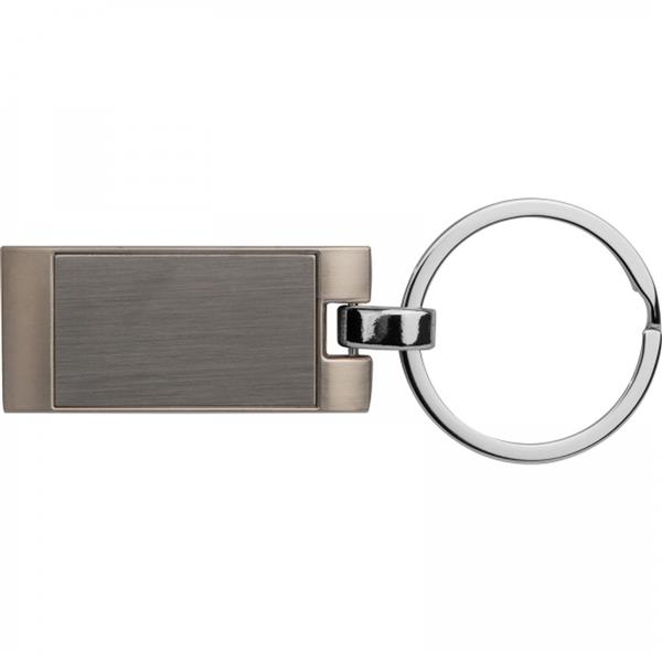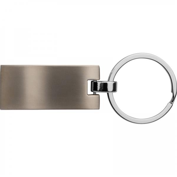 Metalowy brelok do kluczy z prostokątną środkową częścią z metalu szczotkowanego.