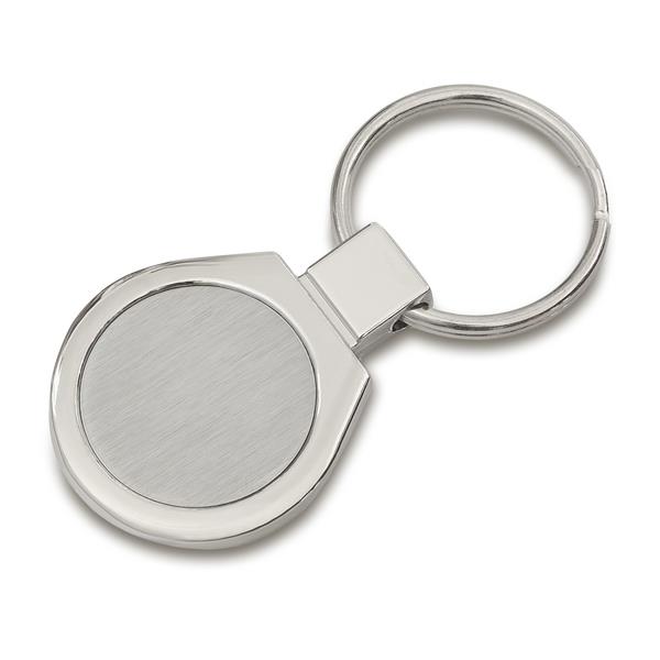 Brelok z łączonego matowego i błyszczącego metalu. Doskonale nadaje się na akcje promocyjne. Pakowany w czarne kartonowe opakowanie upominkowe.