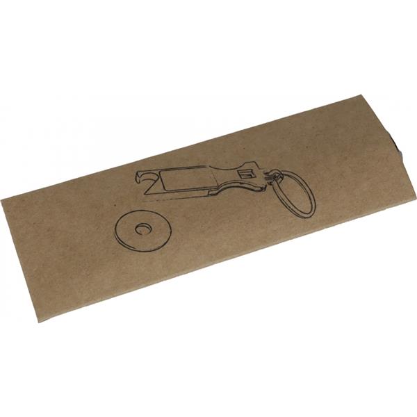 Metalowy otwieracz do butelek z żetonem do wózka i brelokiem.