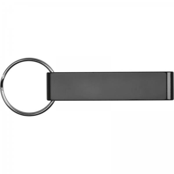 Metalowy brelok z otwieraczem do butelek, którego można użyć również jako stojaka na telefon.