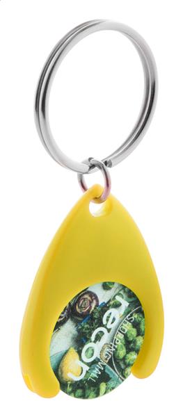 Plastikowy brelok z miejscem na monetę. Wielkość monety: o24×2 mm.