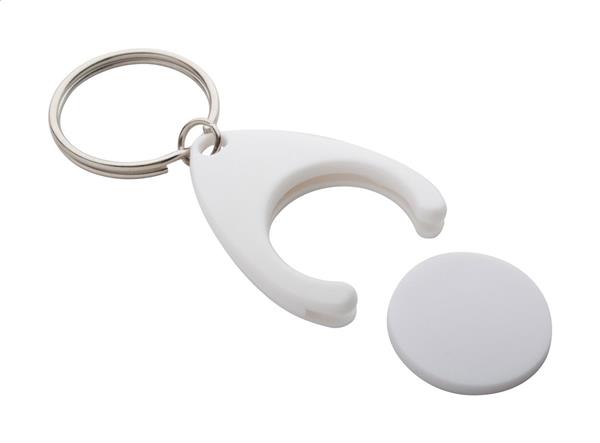 Plastikowy brelok z miejscem na monetę. Wielkość monety: o24×2 mm. Description: Plastikowy brelok z miejscem na monetę. Wielkość monety: o24×2 mm. Primary Color: biały Material 1: Plastik Material 2: Metal Rozmiar: 33×44×5 mm